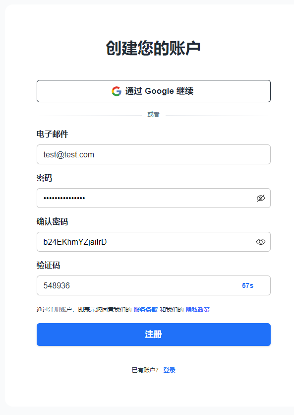 * **邮箱地址**：输入一个有效的邮箱地址，该地址将用于后续的通讯和账户验证。